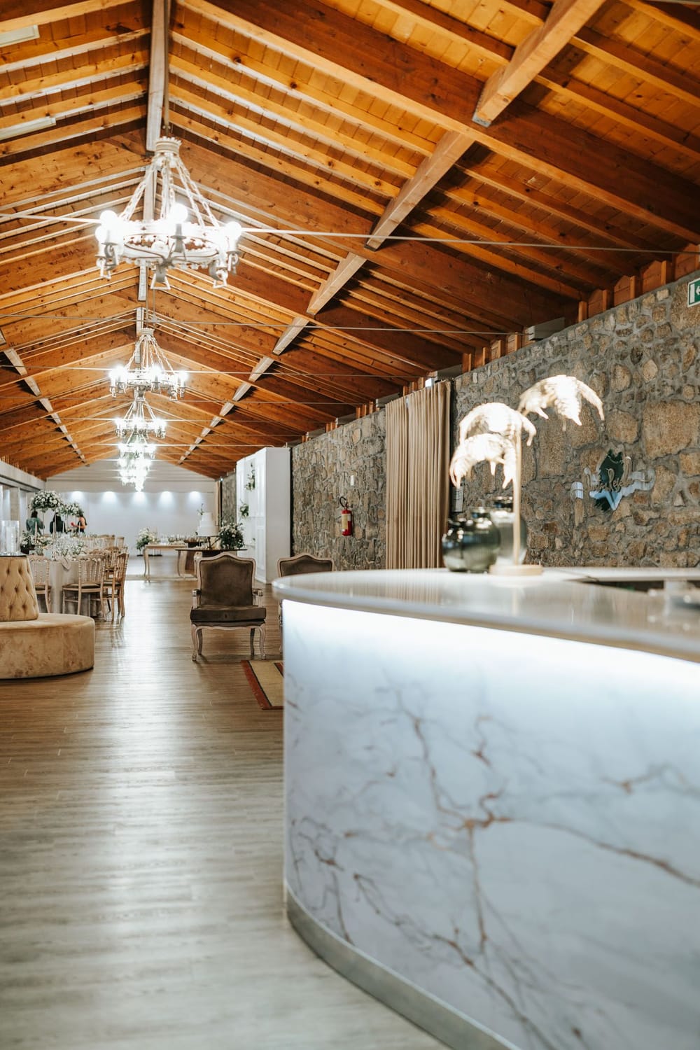 O edifício Prestígio, núcleo central da quinta, foi sabiamente revitalizado para acolher grandes celebrações e eventos — a sua sala principal comporta mais de 500 pessoas, com sistema de som ambiente, climatização e áreas lounge sofisticadas, tanto interiores como exteriores. E porque a atenção ao detalhe faz toda a diferença, o espaço está preparado para todas as circunstâncias: dispõe de berçário, fraldário, zona infantil com videojogos, áreas de amamentação, WC adaptados e até um camarim reservado aos noivos